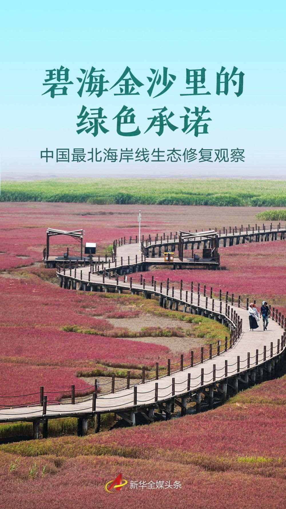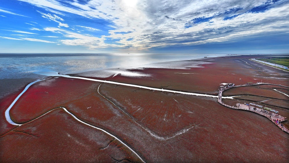 遼寧海濱,北緯39度的海風(fēng)掠過浮光躍動的海灣,丹頂鶴在紅海灘間蹁躚起舞;海岸線上,執(zhí)法船在巡航,電子眼守護(hù)著潔凈的沙灘;沙灘上,志愿者拾起漂浮的塑料瓶……交織成一幅動人的生態(tài)畫卷。