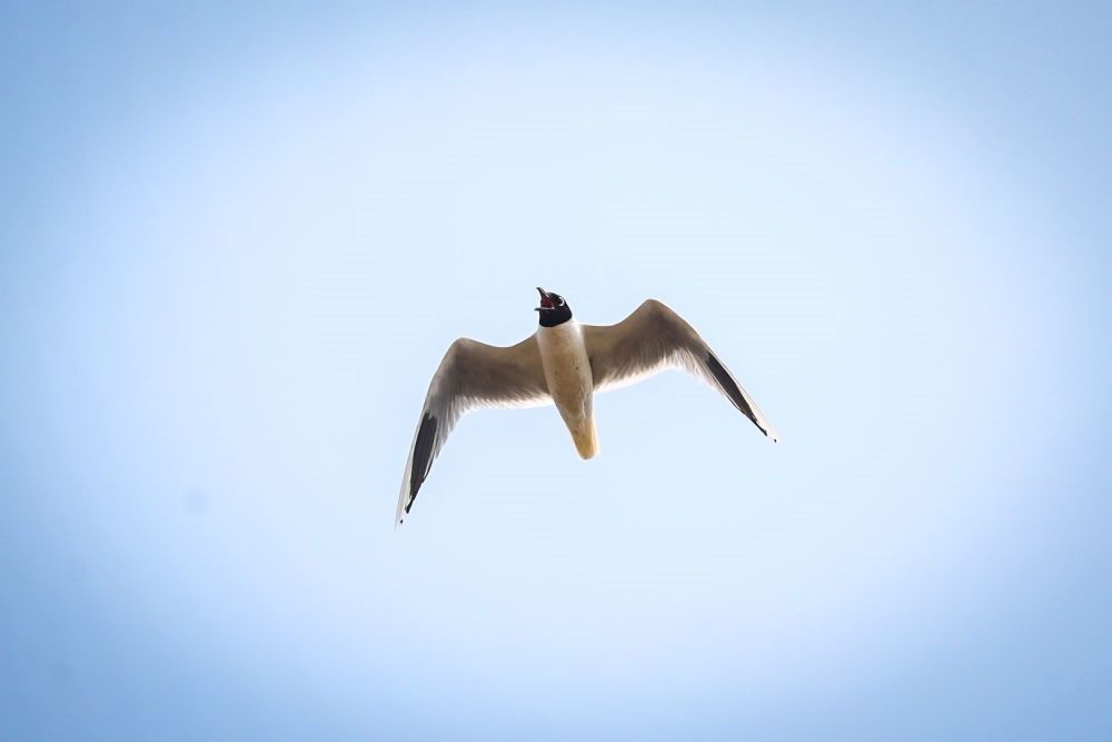 在盤錦市遼河口國家級自然保護(hù)區(qū)南小河保護(hù)站附近的濕地,黑嘴鷗在天空中飛翔(2022年6月17日攝)。新華社記者 潘昱龍 攝