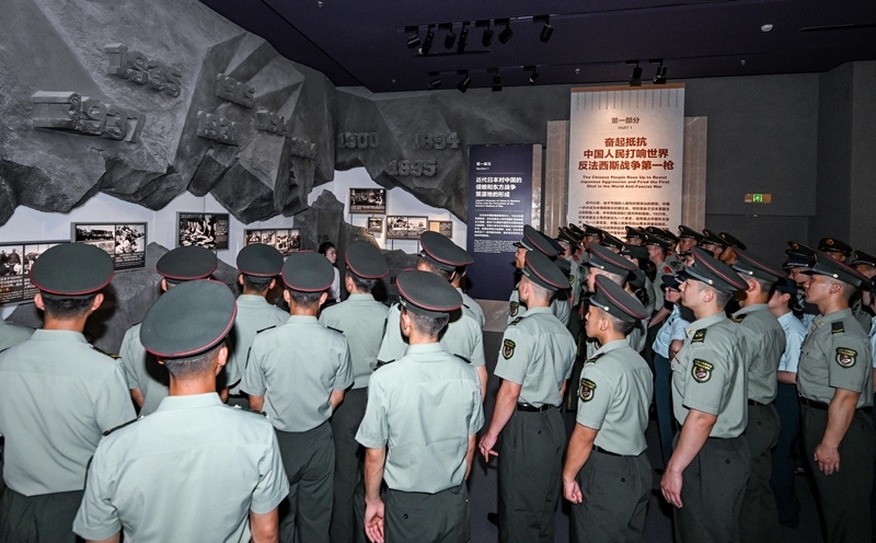 7月7日,解放軍官兵參觀主題展覽。