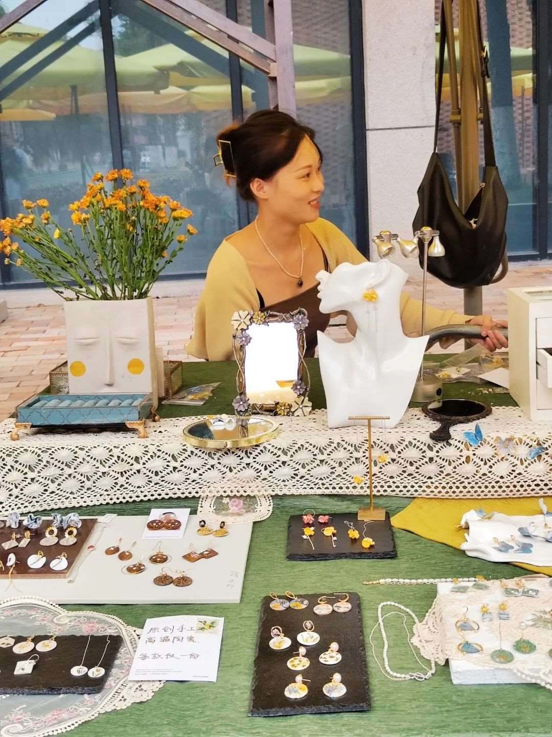 畢業(yè)于湖北美術(shù)學(xué)院陶瓷藝術(shù)專業(yè)的楊帆,2020年放棄本校讀研的機會,選擇到江西景德鎮(zhèn)創(chuàng)業(yè),主打陶瓷首飾創(chuàng)作?!耙郧澳芟氲降木蜆I(yè)方向是當美術(shù)老師或者開陶吧,直到在景德鎮(zhèn)看到另一種可能?!睏罘f,大四那年,景德鎮(zhèn)的陶溪川創(chuàng)意集市邀請她們學(xué)校師生去擺攤,讓她看到了一種新生活——夜幕降臨后,幾百個年輕人一起出攤把作品賣出去。