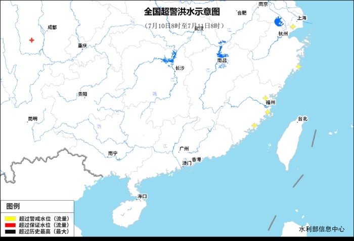 記者從水利部了解到,昨天(7月10日)8時(shí)到今天(11日)8時(shí),受降雨影響,四川青衣江支流隴西河、福建沿海九十九溪及敖江支流斌溪等3條中小河流發(fā)生超警以上洪水。