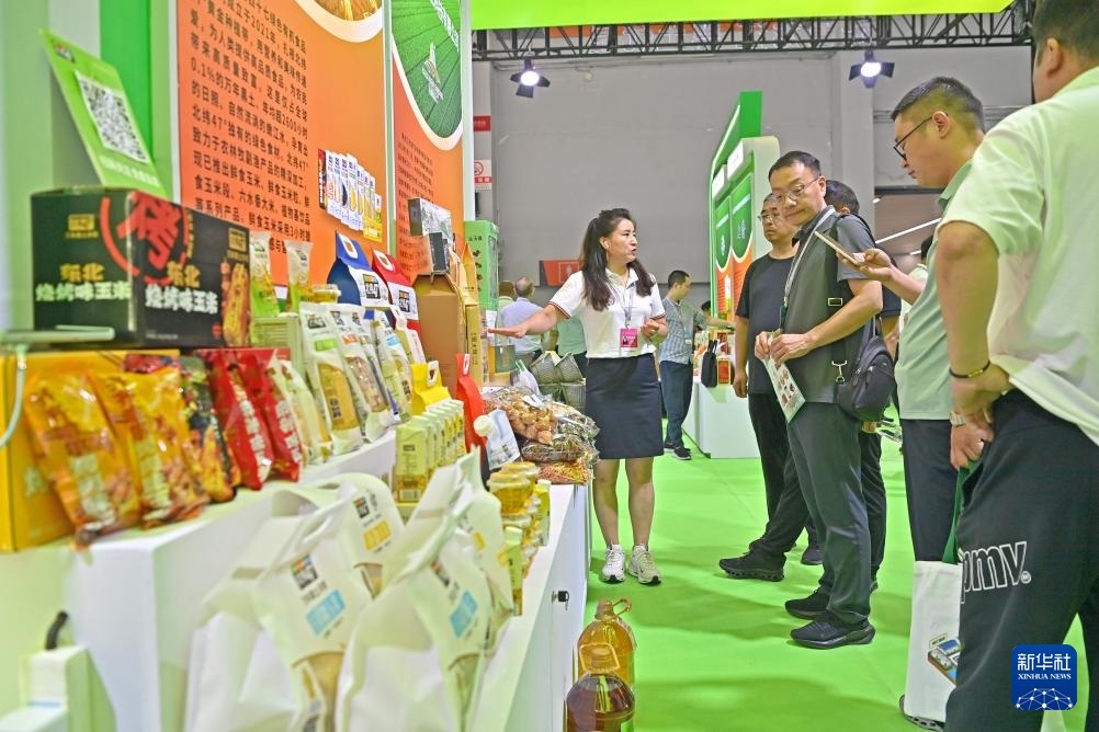 7月12日,觀眾在沈陽國際展覽中心參觀糧油產(chǎn)品。新華社記者 周華 攝