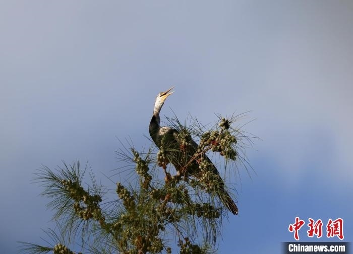 中新網(wǎng)海南昌江7月13日電(陳英清)近日,海南昌江海尾國(guó)家濕地公園記錄到1只黑腹蛇鵜。經(jīng)海南省鳥類記錄中心專家確認(rèn),這是海南省首次記錄到該鳥種。黑腹蛇鵜已被《世界自然保護(hù)聯(lián)盟瀕危物種紅色名錄》(IUCN)列為近危(NT)物種。