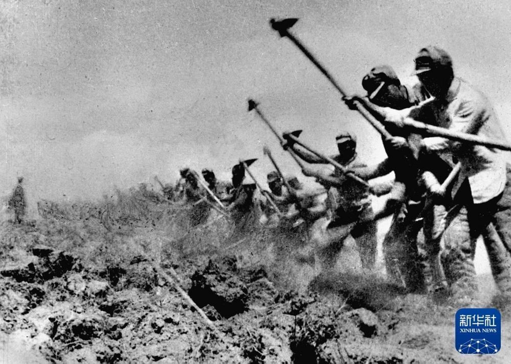 八路軍戰(zhàn)士在南泥灣開荒時(shí)的情景。吳印咸 攝