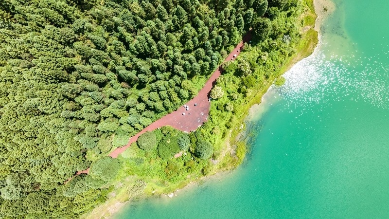 7月30日,游客在瑤池公園內(nèi)漫步游玩(無人機照片)。