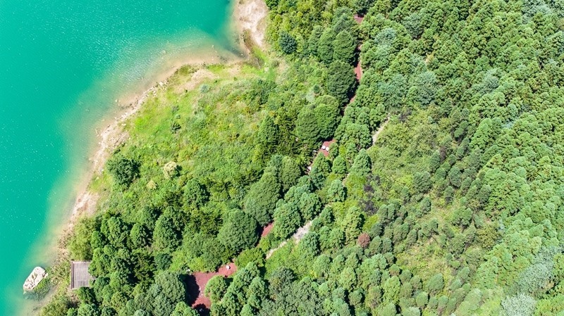 這是7月30日拍攝的六盤水市鐘山區(qū)瑤池公園風光(無人機照片)。