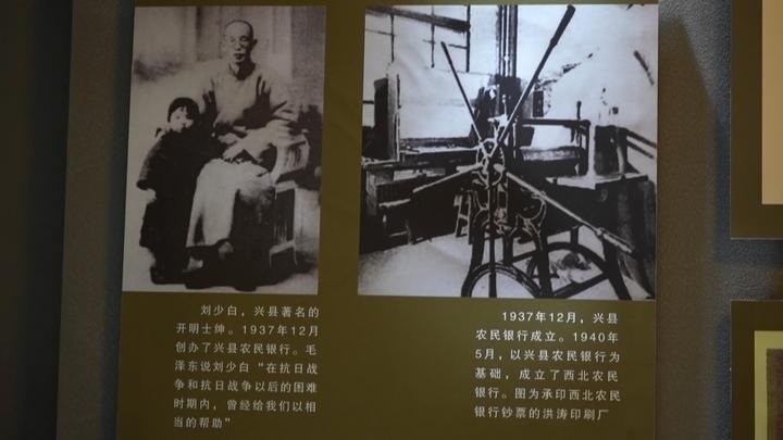 講解員張英告訴記者,為了更貼近百姓,與閻錫山的晉鈔區(qū)分開(kāi)來(lái),所以取名叫興縣農(nóng)民銀行?!霸冢ㄅd縣)農(nóng)民銀行的基礎(chǔ)上,我們又成立了西北農(nóng)民銀行。西北農(nóng)民銀行當(dāng)時(shí)的主要工作就是印鈔。我們看到的這個(gè)就是當(dāng)時(shí)建立的洪濤印刷廠(chǎng),當(dāng)時(shí)洪濤印刷廠(chǎng)的工作也非常多,從1940年成立到1949年1月,一共印的鈔票價(jià)值是3.8億元。1940年5月10日,我們?cè)谂d縣孫家大院舉辦了開(kāi)業(yè)大禮,從此西北農(nóng)民銀行誕生,之后在1948年12月份,西北農(nóng)民銀行、華北銀行、北海銀行合并,組建了中國(guó)人民銀行,至此,西北農(nóng)民銀行完成了它的歷史使命?!彼f(shuō)。