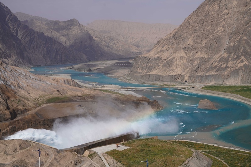 阿爾塔什水利樞紐工程位于新疆維吾爾自治區(qū)喀什地區(qū)莎車縣霍什拉甫鄉(xiāng)和克孜勒蘇柯爾克孜自治州阿克陶縣庫斯拉甫鄉(xiāng)交界處,是葉爾羌河山區(qū)控制性水利樞紐工程,總庫容22.49億立方米,設(shè)計年發(fā)電量21.86億千瓦時,是新疆目前規(guī)模最大的水利樞紐工程。該工程兼顧生態(tài)、防洪、灌溉、發(fā)電等功能,2021年8月建成投產(chǎn)以來,平均每年向塔里木河干流生態(tài)補水約3.3億立方米。該工程建成后,徹底解決了葉爾羌河千年水患,每年減少約1000萬人次的防洪投入;同時為南疆提供清潔能源,改善了南疆的電力短缺狀況。