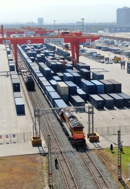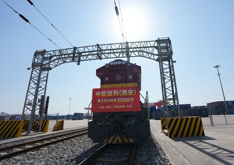 當日上午,滿載著55個集裝箱光伏組件的X9043次中歐班列從西安國際港站駛出,開往阿塞拜疆巴庫,標志著中歐班列(西安)自2013年開行首列以來累計開行突破30000列,開行總量超過全國中歐班列累計開行總量的四分之一。西安國際港站也成為了全國首個中歐班列開行量突破30000列的車站,開行量、貨運量、重箱率等核心指標位居全國第一。