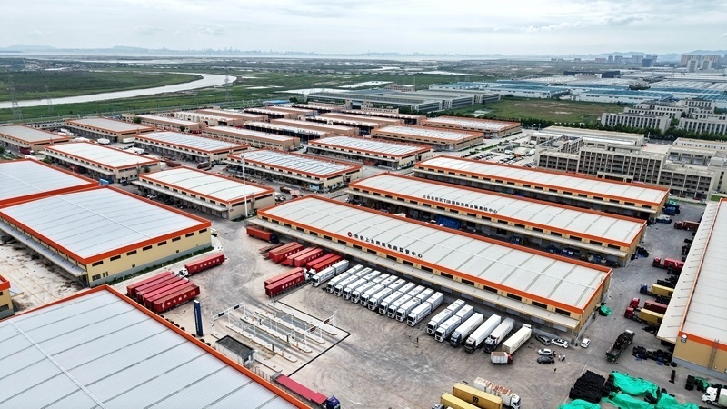這是位于青島膠州市的中國(guó)傳化(上合)國(guó)際物流港。該物流港集智能倉(cāng)儲(chǔ)、零擔(dān)分撥、多式聯(lián)運(yùn)等功能于一體(8月27日攝,無人機(jī)照片)。