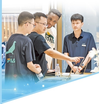 “入境游客喜歡選購耳機(jī)、AI眼鏡以及半導(dǎo)體手持制冷風(fēng)扇。今年歐洲天氣比較炎熱,有一名外國客人一次性買了兩箱半導(dǎo)體手持制冷風(fēng)扇?!卑桶厣畴娮赢a(chǎn)品生活館負(fù)責(zé)人盧華介紹,與去年相比,今年外國客商增加20%,高峰時(shí)段店里有30%的客戶是外國人。