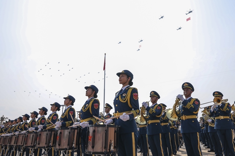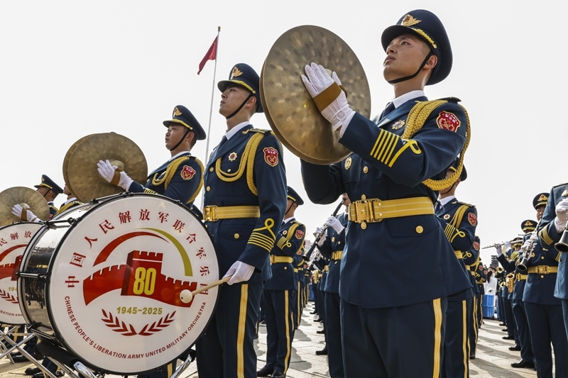 9月3日,紀(jì)念中國(guó)人民抗日戰(zhàn)爭(zhēng)暨世界反法西斯戰(zhàn)爭(zhēng)勝利80周年大會(huì)在北京隆重舉行。這是中國(guó)人民解放軍聯(lián)合軍樂團(tuán)在演奏。