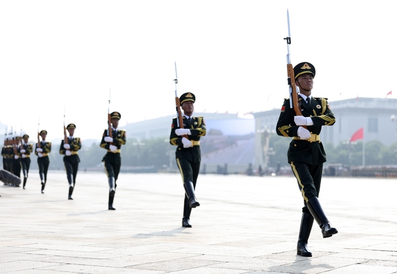 9月3日,紀(jì)念中國(guó)人民抗日戰(zhàn)爭(zhēng)暨世界反法西斯戰(zhàn)爭(zhēng)勝利80周年大會(huì)在北京隆重舉行。這是標(biāo)兵就位。