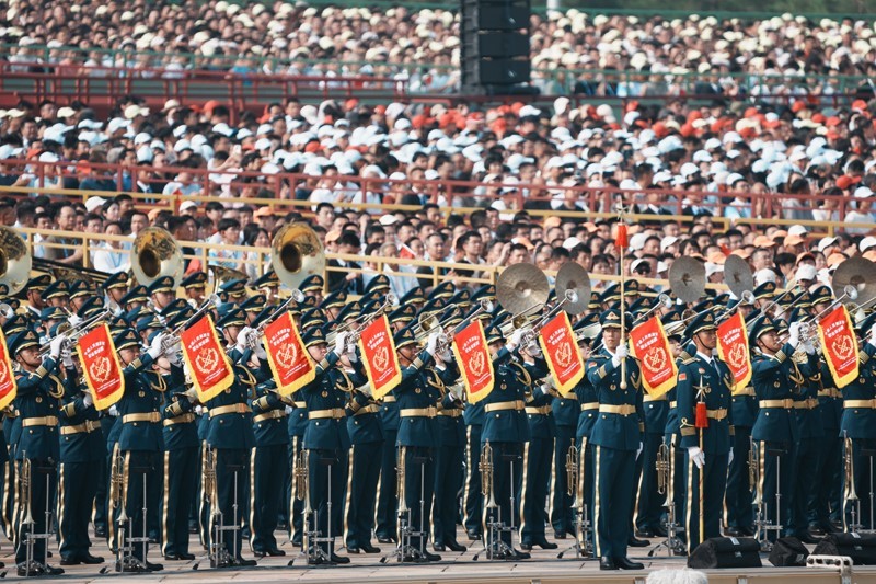 9月3日,紀(jì)念中國(guó)人民抗日戰(zhàn)爭(zhēng)暨世界反法西斯戰(zhàn)爭(zhēng)勝利80周年大會(huì)在北京隆重舉行。這是中國(guó)人民解放軍聯(lián)合軍樂(lè)團(tuán)在演奏。