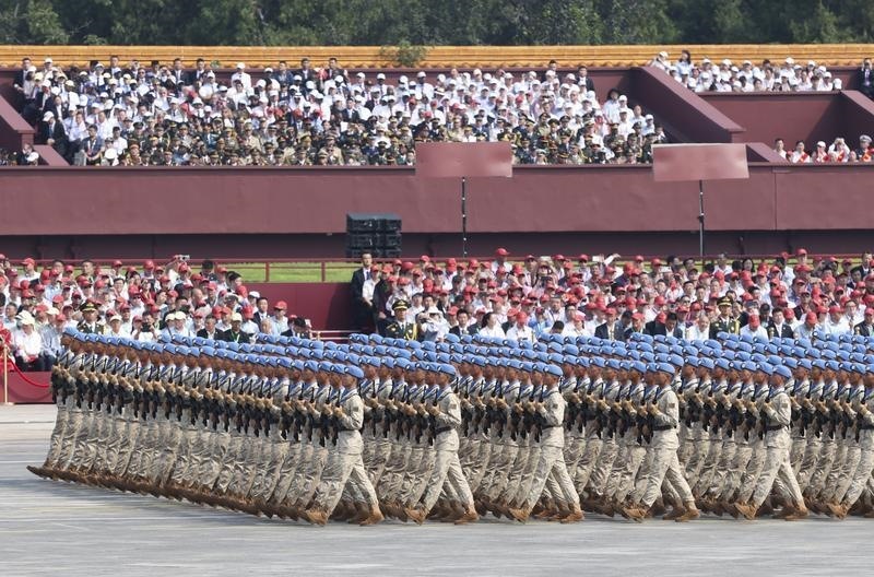9月3日,紀(jì)念中國人民抗日戰(zhàn)爭暨世界反法西斯戰(zhàn)爭勝利80周年大會在北京隆重舉行。這是維和部隊方隊接受檢閱。