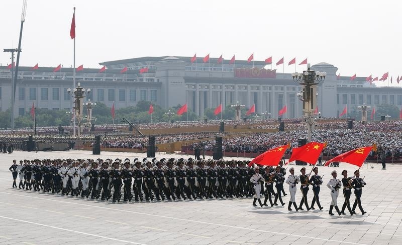 9月3日,紀(jì)念中國人民抗日戰(zhàn)爭暨世界反法西斯戰(zhàn)爭勝利80周年大會在北京隆重舉行。這是民兵方隊接受檢閱。