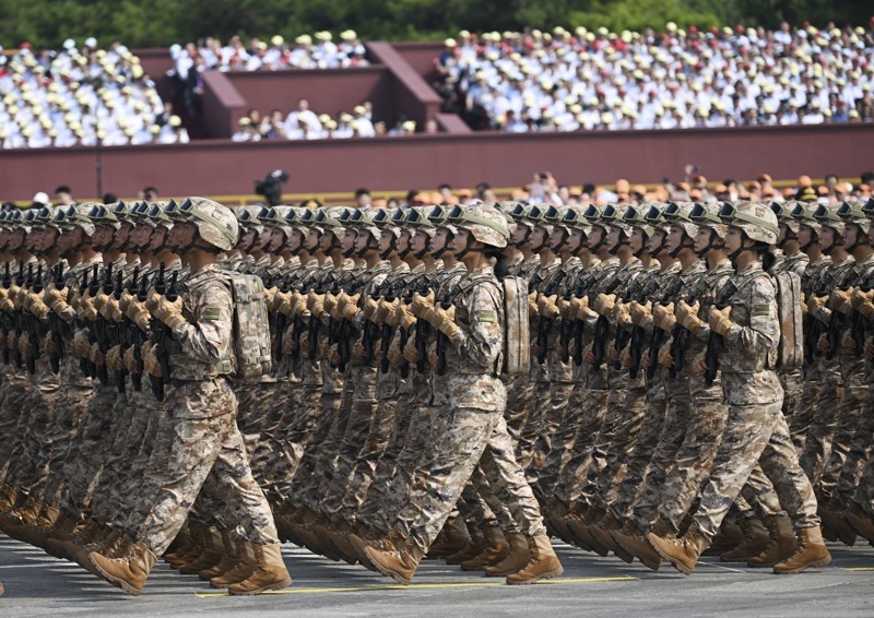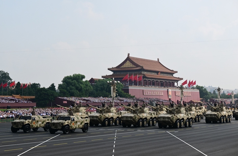 9月3日,紀念中國人民抗日戰(zhàn)爭暨世界反法西斯戰(zhàn)爭勝利80周年大會在北京隆重舉行。這是信息支援部隊方隊接受檢閱。