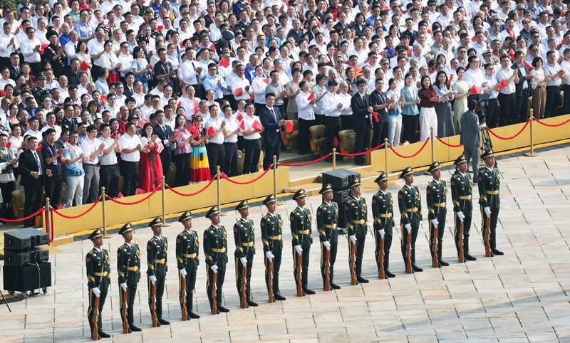 9月3日,紀念中國人民抗日戰(zhàn)爭暨世界反法西斯戰(zhàn)爭勝利80周年大會在北京隆重舉行。這是標兵和觀禮嘉賓。