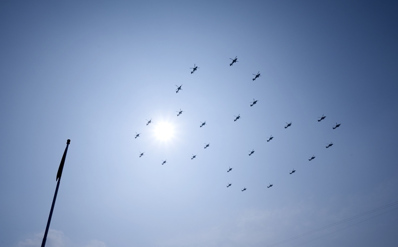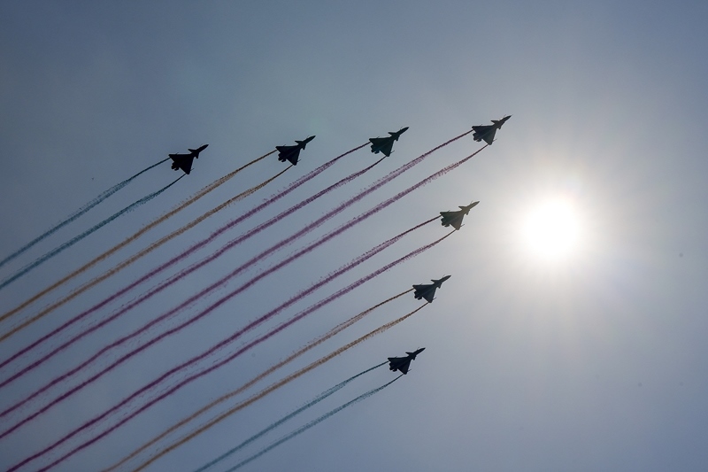 9月3日,紀念中國人民抗日戰(zhàn)爭暨世界反法西斯戰(zhàn)爭勝利80周年大會在北京隆重舉行。這是空中梯隊接受檢閱。