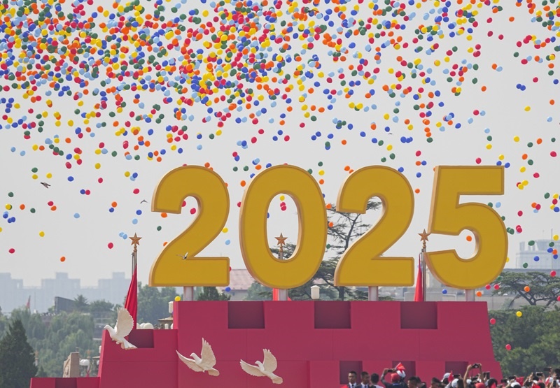 9月3日,紀念中國人民抗日戰(zhàn)爭暨世界反法西斯戰(zhàn)爭勝利80周年大會在北京隆重舉行。這是天安門廣場放飛氣球和鴿子。