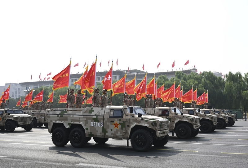 9月3日,紀念中國人民抗日戰(zhàn)爭暨世界反法西斯戰(zhàn)爭勝利80周年大會在北京隆重舉行。這是地面突擊方隊接受檢閱。