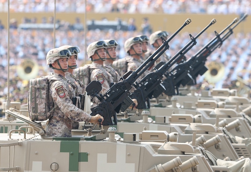 9月3日,紀念中國人民抗日戰(zhàn)爭暨世界反法西斯戰(zhàn)爭勝利80周年大會在北京隆重舉行。這是網(wǎng)絡(luò)空間作戰(zhàn)方隊接受檢閱。