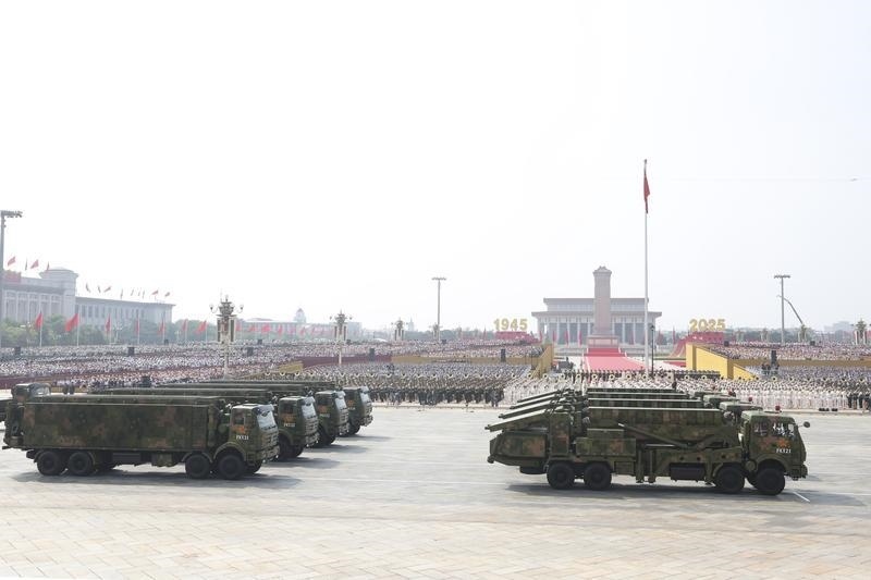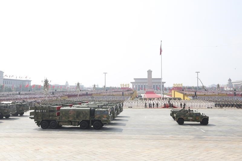 9月3日,紀(jì)念中國(guó)人民抗日戰(zhàn)爭(zhēng)暨世界反法西斯戰(zhàn)爭(zhēng)勝利80周年大會(huì)在北京隆重舉行。這是對(duì)空抗擊方隊(duì)接受檢閱。