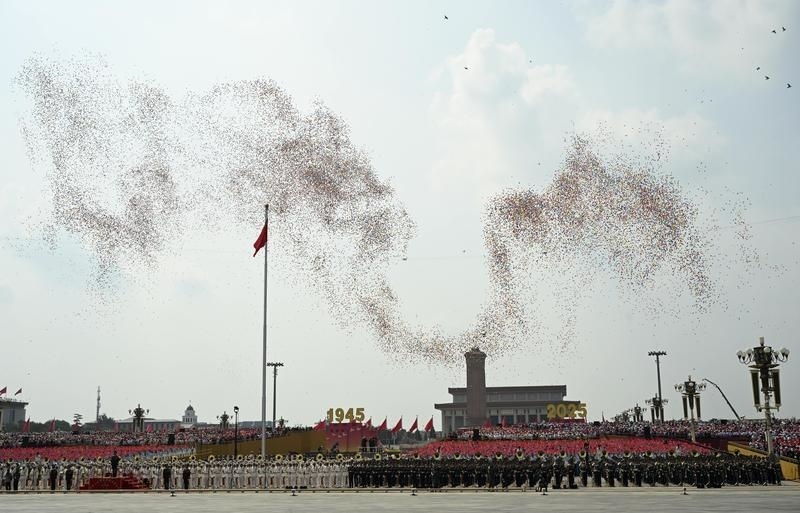 9月3日,紀(jì)念中國(guó)人民抗日戰(zhàn)爭(zhēng)暨世界反法西斯戰(zhàn)爭(zhēng)勝利80周年大會(huì)在北京隆重舉行。這是紀(jì)念大會(huì)現(xiàn)場(chǎng)放飛氣球。