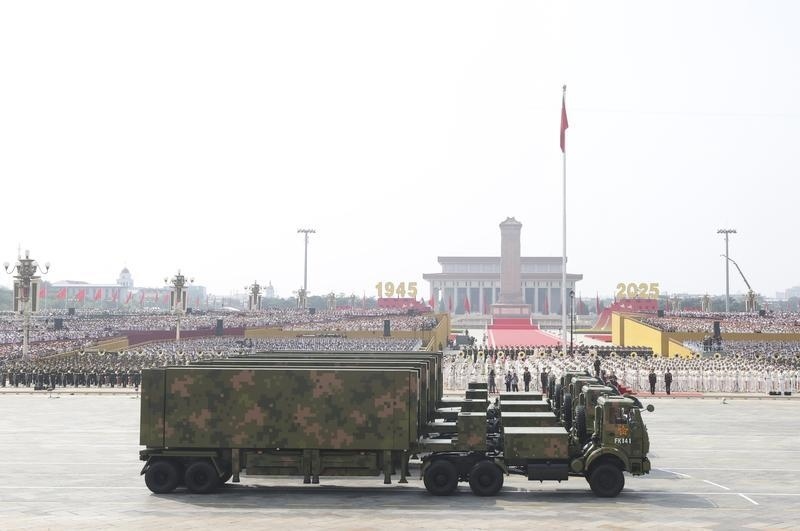 9月3日,紀(jì)念中國(guó)人民抗日戰(zhàn)爭(zhēng)暨世界反法西斯戰(zhàn)爭(zhēng)勝利80周年大會(huì)在北京隆重舉行。這是反艦導(dǎo)彈方隊(duì)接受檢閱。