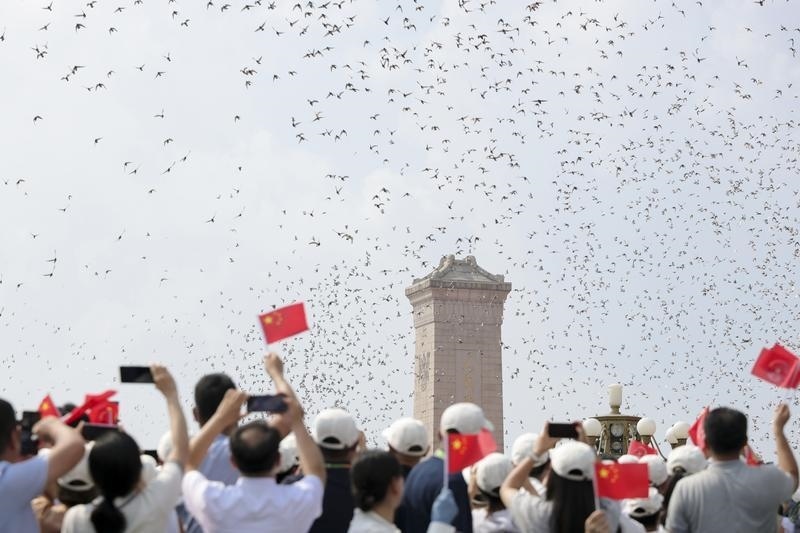 9月3日,紀(jì)念中國(guó)人民抗日戰(zhàn)爭(zhēng)暨世界反法西斯戰(zhàn)爭(zhēng)勝利80周年大會(huì)在北京隆重舉行。這是紀(jì)念大會(huì)現(xiàn)場(chǎng)放飛鴿子。