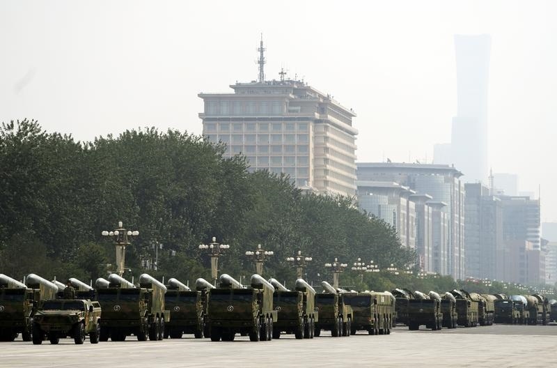 9月3日,紀(jì)念中國(guó)人民抗日戰(zhàn)爭(zhēng)暨世界反法西斯戰(zhàn)爭(zhēng)勝利80周年大會(huì)在北京隆重舉行。這是火箭軍方隊(duì)接受檢閱。
