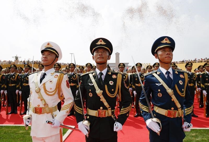 9月3日,紀(jì)念中國(guó)人民抗日戰(zhàn)爭(zhēng)暨世界反法西斯戰(zhàn)爭(zhēng)勝利80周年大會(huì)在北京隆重舉行。這是國(guó)旗護(hù)衛(wèi)隊(duì)在天安門廣場(chǎng)列隊(duì)。