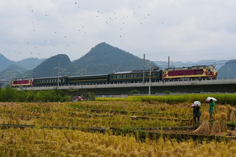 9月6日,在貴州省盤州市,盤興高鐵聯(lián)調(diào)聯(lián)試檢測列車從盤州站駛出。