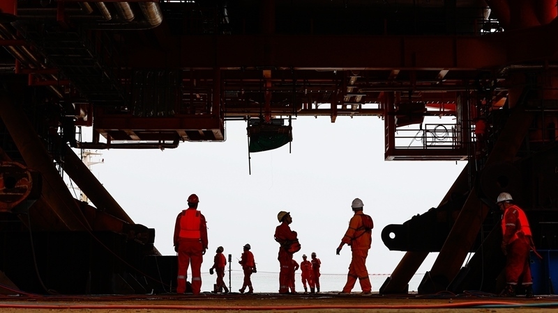 9月8日,工人在墾利6-1油田10-1北區(qū)塊Ⅱ期開發(fā)項(xiàng)目油氣平臺(tái)安裝作業(yè)現(xiàn)場(chǎng)施工。
