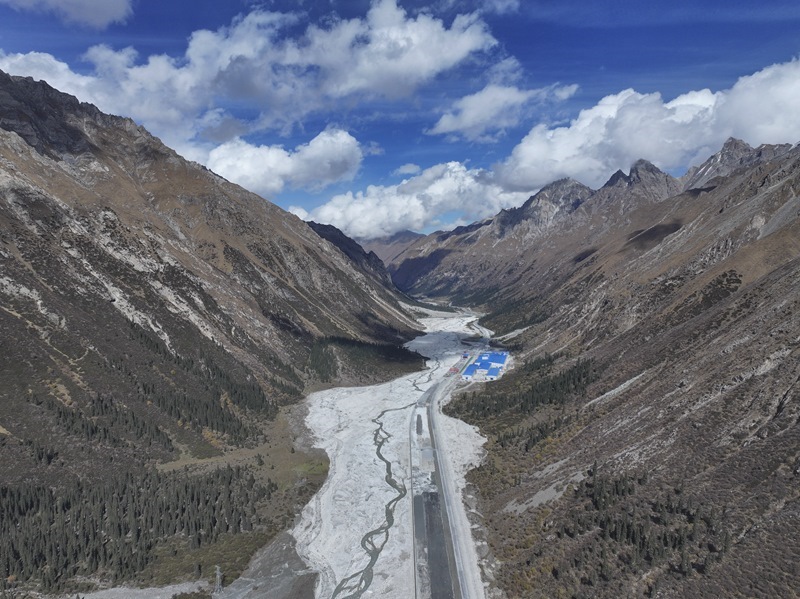 這是10月5日在新疆昭蘇縣拍攝的昭溫公路西天山特長隧道進口端及附近施工現(xiàn)場(無人機照片)。該隧道為全線關鍵控制性工程,全長15.707千米,由北向南穿越天山山脈。