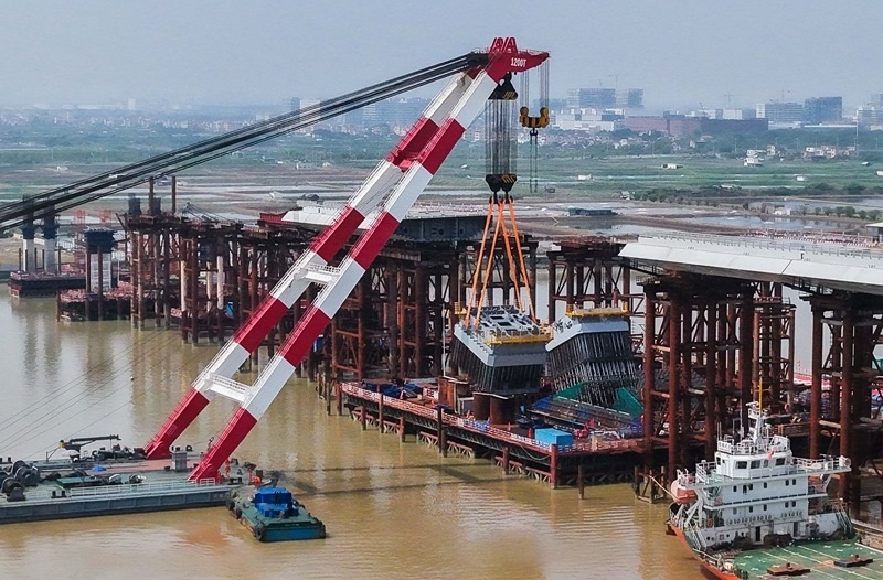10月10日,由中鐵建大橋局承建的萬(wàn)龍大橋吊裝架設(shè)首節(jié)段主塔。位于廣州南沙區(qū)的萬(wàn)龍大橋跨越珠江口龍穴南水道,全長(zhǎng)5146米,主橋長(zhǎng)1150米,主跨608米,為粵港澳大灣區(qū)又一世界級(jí)橋梁。