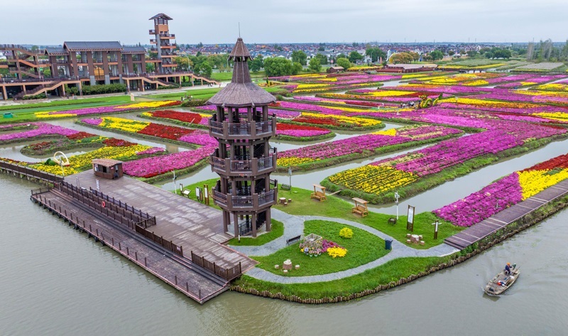 10月17日,游客在江蘇省興化市千垛景區(qū)賞菊游玩(無人機(jī)照片)。