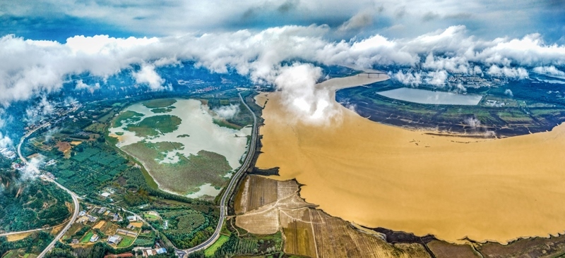 10月17日在山西省運(yùn)城市平陸縣境內(nèi)拍攝的黃河云海景觀。