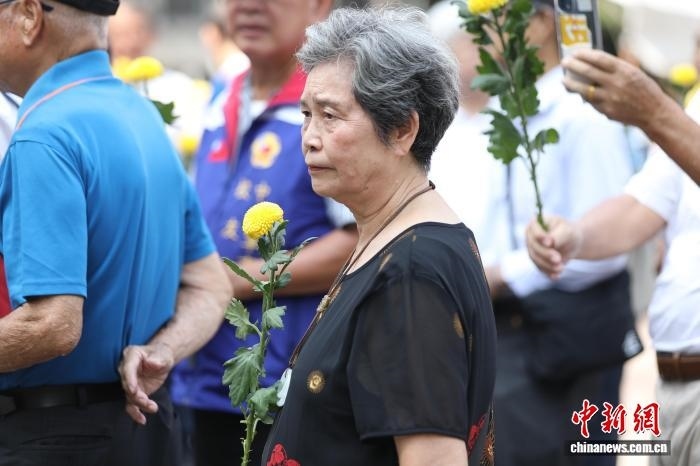2025年9月3日是抗戰(zhàn)勝利紀(jì)念日,臺灣民間團(tuán)體當(dāng)天在臺北市中山堂廣場舉行抗戰(zhàn)勝利80周年紀(jì)念活動,緬懷先賢的犧牲奉獻(xiàn),呼吁正視歷史、珍愛和平。圖為臺灣抗日志士羅福星的孫女羅秋昭出席活動,向抗戰(zhàn)中犧牲的軍民同胞敬獻(xiàn)鮮花。 中新社記者 朱賀 攝
