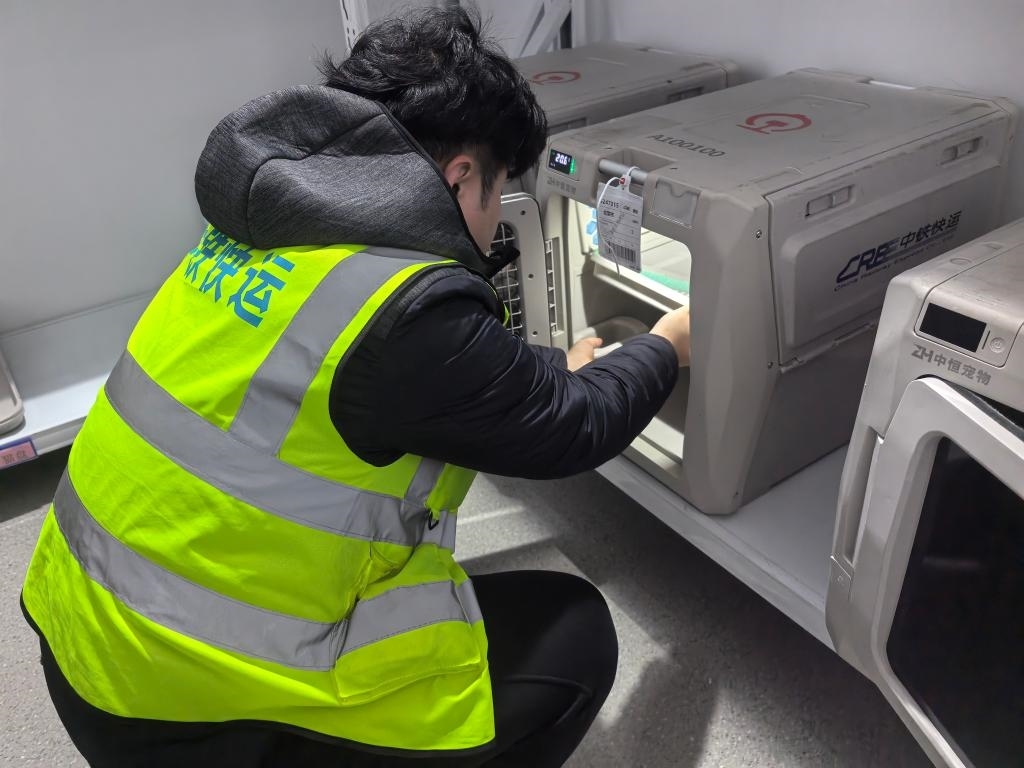 中鐵快運太原南站營業(yè)部業(yè)務負責人武鑫介紹:“我們自今年10月啟動高鐵寵物托運服務試點以來,已經托運過寵物貓、寵物狗等。旅客可以在12306官方平臺或到營業(yè)部現(xiàn)場辦理托運業(yè)務。托運前,需要提交相關部門的檢疫證明。工作人員會對寵物運輸箱和列車環(huán)境進行嚴格消毒。寵物運輸箱內還帶有攝像頭,主人可以通過監(jiān)控查看自家寵物的實時狀態(tài)。我們配備的工作人員,也會定時檢查寵物狀態(tài),提供必要的安撫和飲水?!?/p>