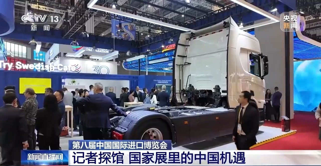 我的AI眼鏡第一時(shí)間就捕捉到了這個(gè)“大塊頭”,放眼望去,整個(gè)國(guó)家展里沒有比它還大件的展品了。這輛高端重卡車型來(lái)自瑞典,是享有“公路之王”美譽(yù)的瑞典企業(yè)斯堪尼亞帶來(lái)的重型運(yùn)輸領(lǐng)域的最新成果。別看它塊頭大,新技術(shù)賦予了它高效節(jié)能的特點(diǎn),是今年國(guó)家展里最吸睛的展品之一。