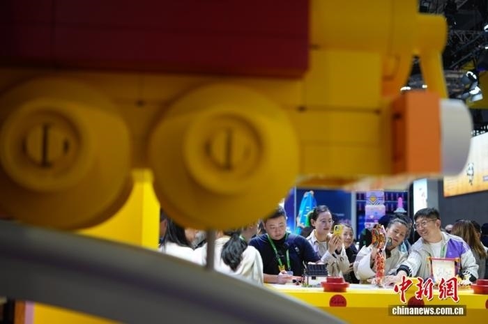 11月6日,上海,第八屆中國(guó)國(guó)際進(jìn)口博覽會(huì)消費(fèi)品展區(qū)人氣旺。圖為樂高展臺(tái)吸引參觀者。中新社記者 蔣啟明 攝