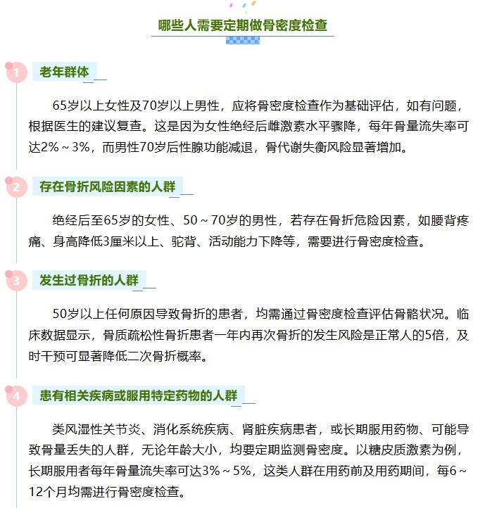骨骼健康是人體健康的重要組成部分,其評估指標(biāo)不僅包括鈣含量,還涉及骨骼強(qiáng)度等多方面的因素,而骨密度在一定程度上,可以反映骨骼健康狀態(tài)。需要明確的是,并非人人都需要進(jìn)行骨密度檢查。而且,當(dāng)下流行的體脂秤及體檢中常用的超聲骨密度檢查,均不能作為診斷骨質(zhì)疏松癥的依據(jù)。正確認(rèn)識骨密度檢查的適用人群,既能避免醫(yī)療資源浪費(fèi),也能減少不必要的健康焦慮。