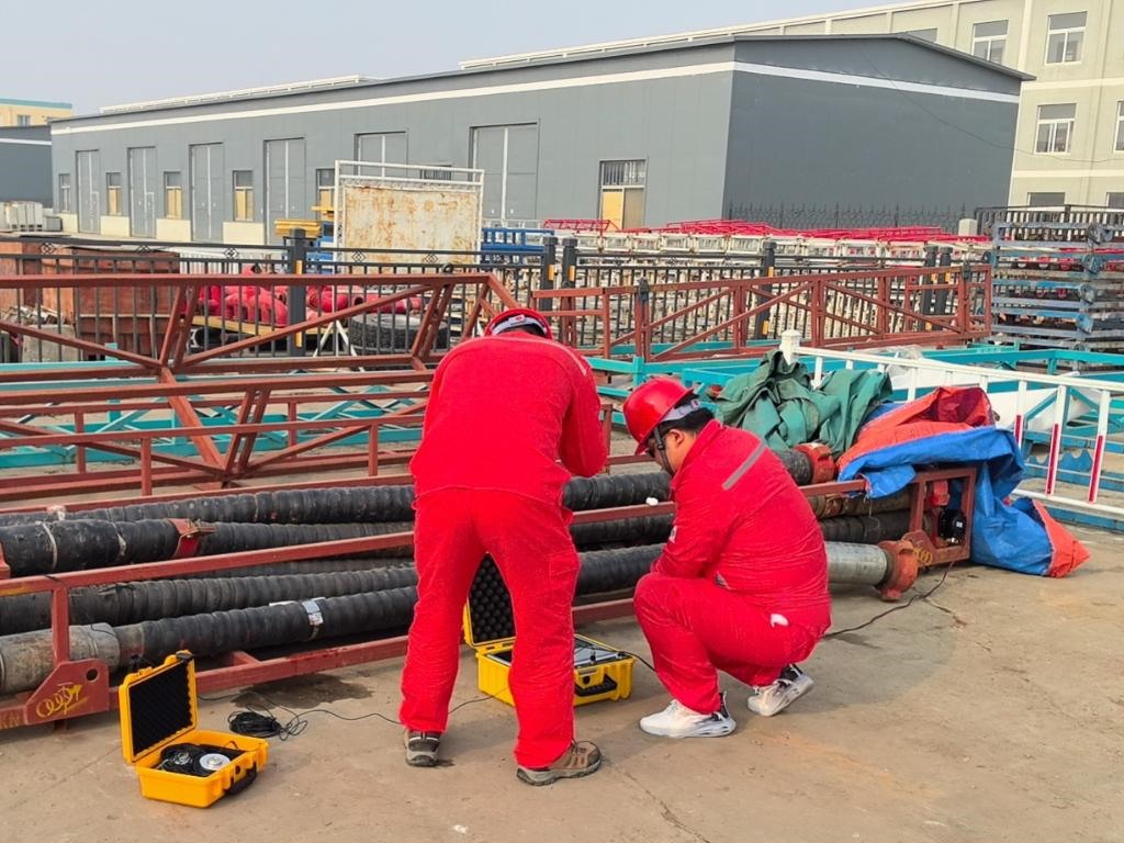 安徽中科昊音智能科技有限公司工作人員正在對油田軟管管道進(jìn)行聲紋AI檢測。受訪者供圖
