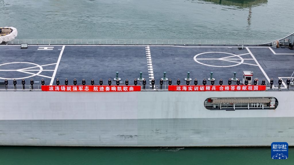 12月22日,中國(guó)海軍989編隊(duì)完成遠(yuǎn)海綜合實(shí)習(xí)任務(wù)返回青島。新華社發(fā)(武航攝)