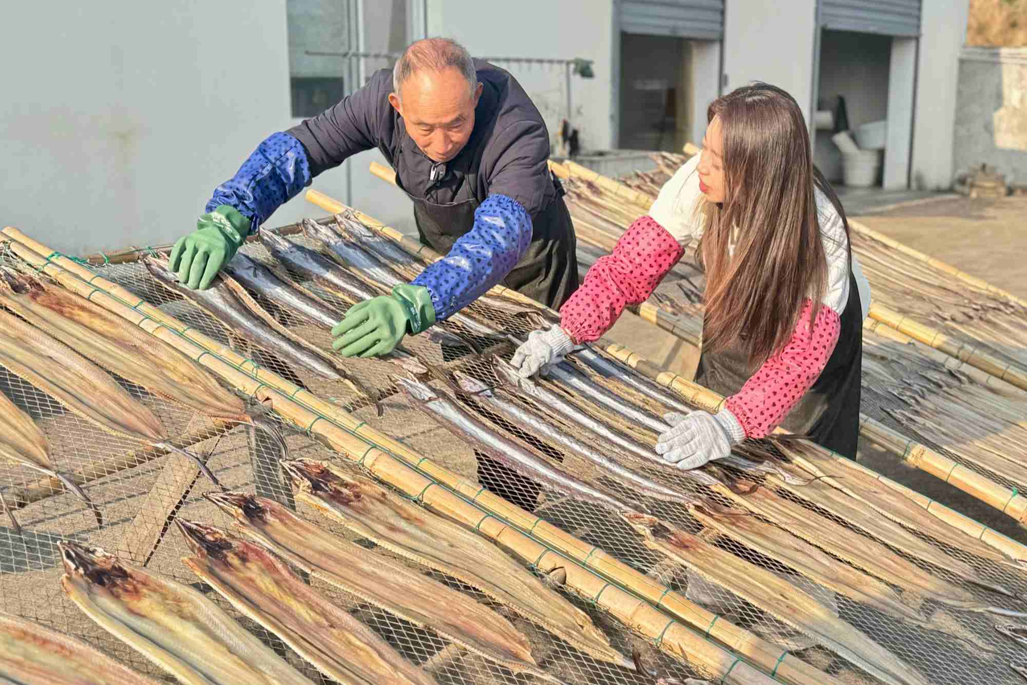 該廠生產(chǎn)的鰻魚(yú)、馬鮫魚(yú)、魷魚(yú)、黃魚(yú)、蝦等鲞類(lèi)產(chǎn)品,在北京、上海、南京等城市供不應(yīng)求,年銷(xiāo)售額超過(guò)500萬(wàn)元。以前靠鹽和陽(yáng)光保存海鮮的老手藝,現(xiàn)在還融入了智能化烘干、真空包裝等現(xiàn)代技術(shù),魚(yú)鲞保質(zhì)期延長(zhǎng)至半年以上,通過(guò)電商平臺(tái)銷(xiāo)往全國(guó)各地,從“農(nóng)家特產(chǎn)”升級(jí)為“網(wǎng)紅爆款”。