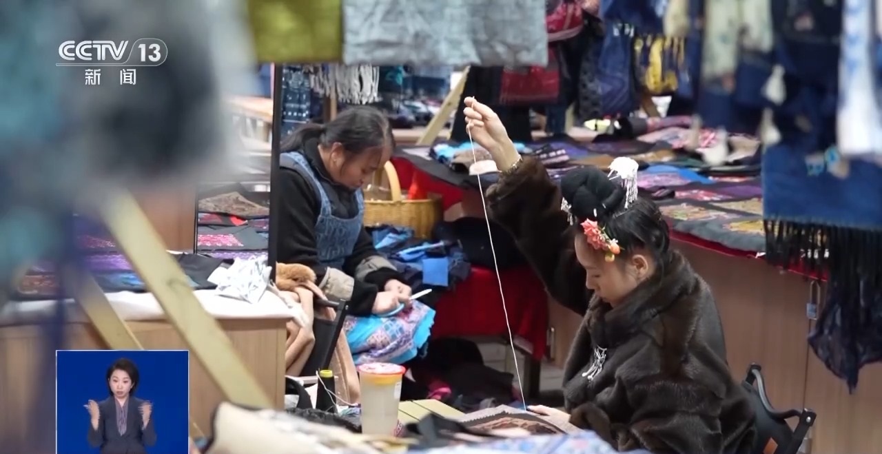 在貴州黔東南苗族侗族自治州凱里市,有一處名為“繡里淘”的非遺大集。新年臨近,當(dāng)?shù)厥止に嚾藗儙е宅槤M目的非遺作品匯聚于此,也吸引了不少游客前來(lái)。