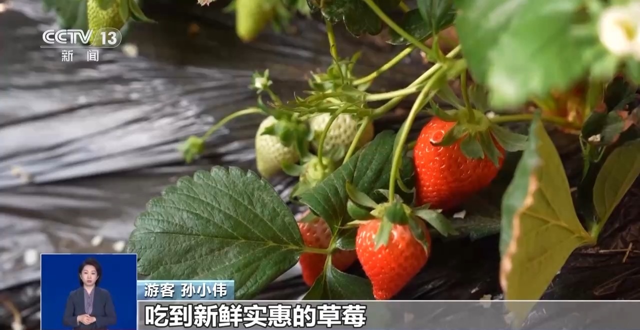游客 孫小偉:孩子喜歡吃草莓,我們就帶著孩子來(lái)采摘,既能帶孩子出來(lái)玩,體驗(yàn)采摘樂(lè)趣,又能在家門口吃到實(shí)惠新鮮的水果,的確是個(gè)好地方。