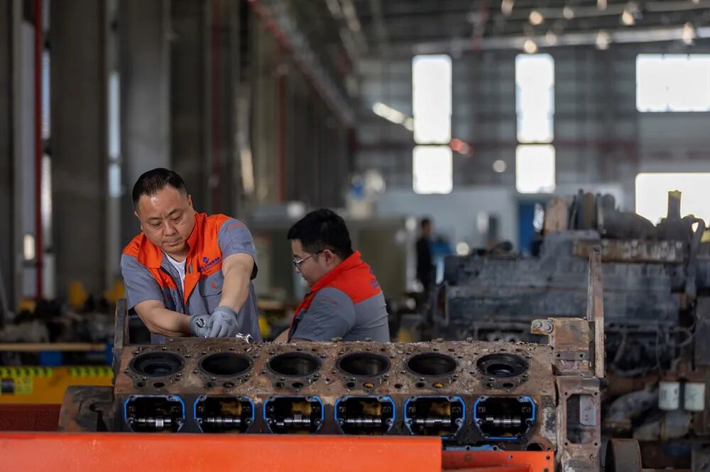 1月13日,中車國際車輛產(chǎn)業(yè)(海南)有限公司維修師在工廠維修發(fā)動(dòng)機(jī)。(中國外文局歐亞中心記者段崴 攝)