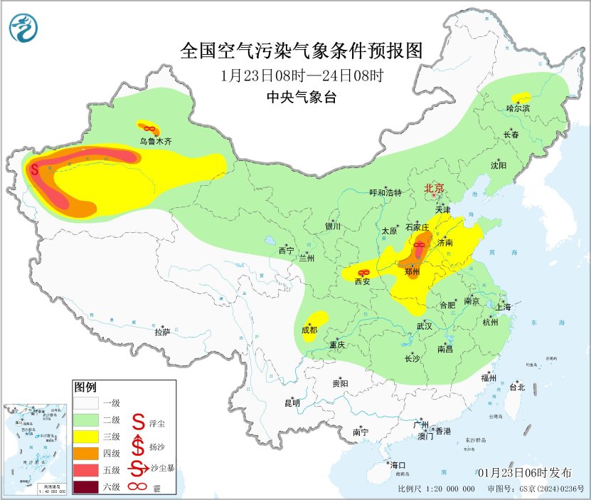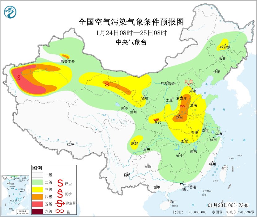 23日起,區(qū)域大部大氣擴(kuò)散條件逐步轉(zhuǎn)差,山西中南部、陜西關(guān)中等地的部分地區(qū)有輕至中度霾。